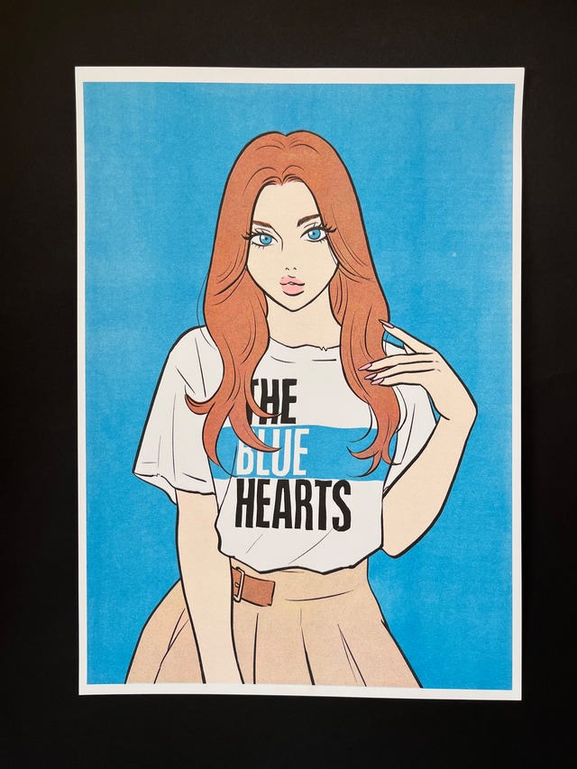 北沢バンビのオリジナルイラストを印刷した リソグラフポスター【BLUE GIRL】です。 サイズ:A3(297×420mm) 印刷:厚紙にリソグラフ印刷/5C ※リソグラフ印刷の特徴である「ズレる」「かすれる」「混色する」。仕上がりを魅力と捉え、1枚1枚微妙に違う刷り上がりの表情豊かな印刷をお楽しみください。 印刷の特性上、ムラや印刷機のローラー跡がある場合があります。 水溶性のインクを使用しているため、印刷面をこすると色移りする可能性がありますのでご注意ください。 画像1.2.3枚目:ポスター撮影画像 画像4枚目:ポスターを額に入れた画像 (使用した額「IKEA」RIBBA リッバ フレーム, ブラック, 40x50 cm) 画像5枚目:こちらのポスター用ボックスに入れて発送させていただきます。