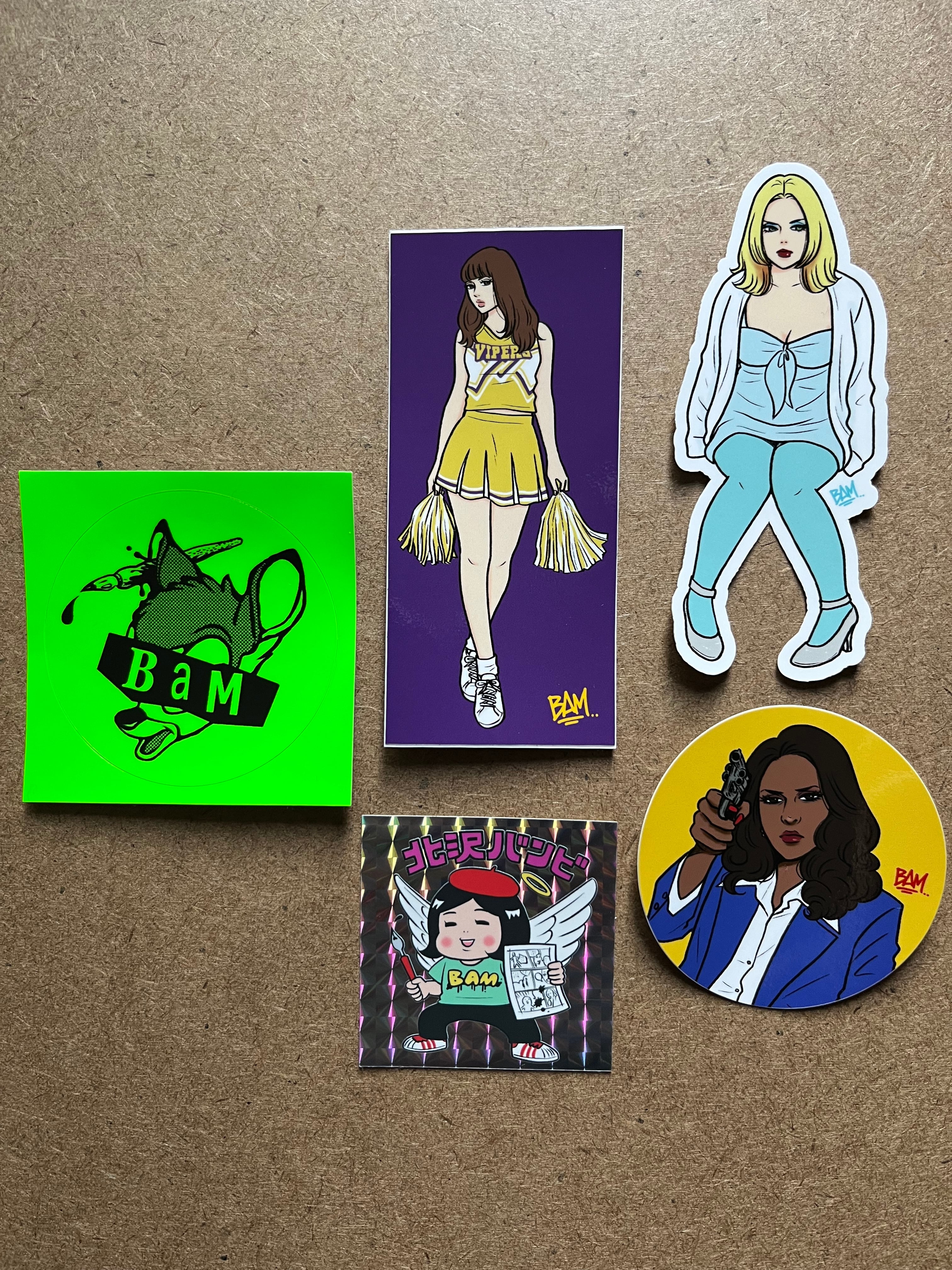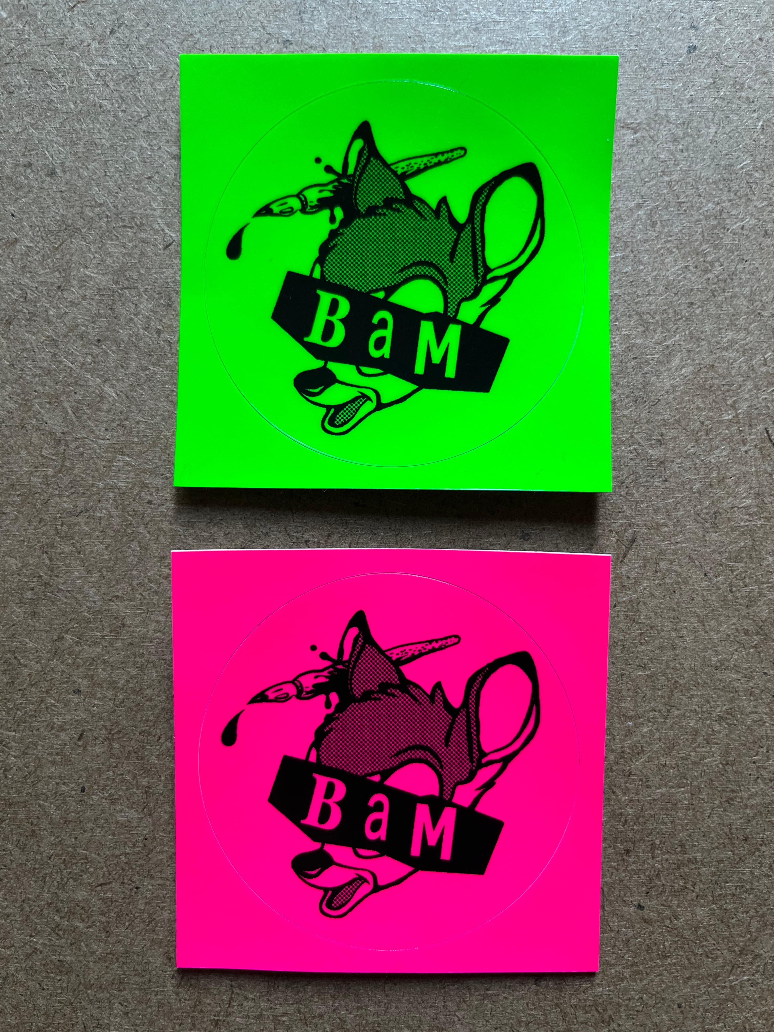 「BaM」ステッカーの蛍光ピンクか蛍光グリーン、